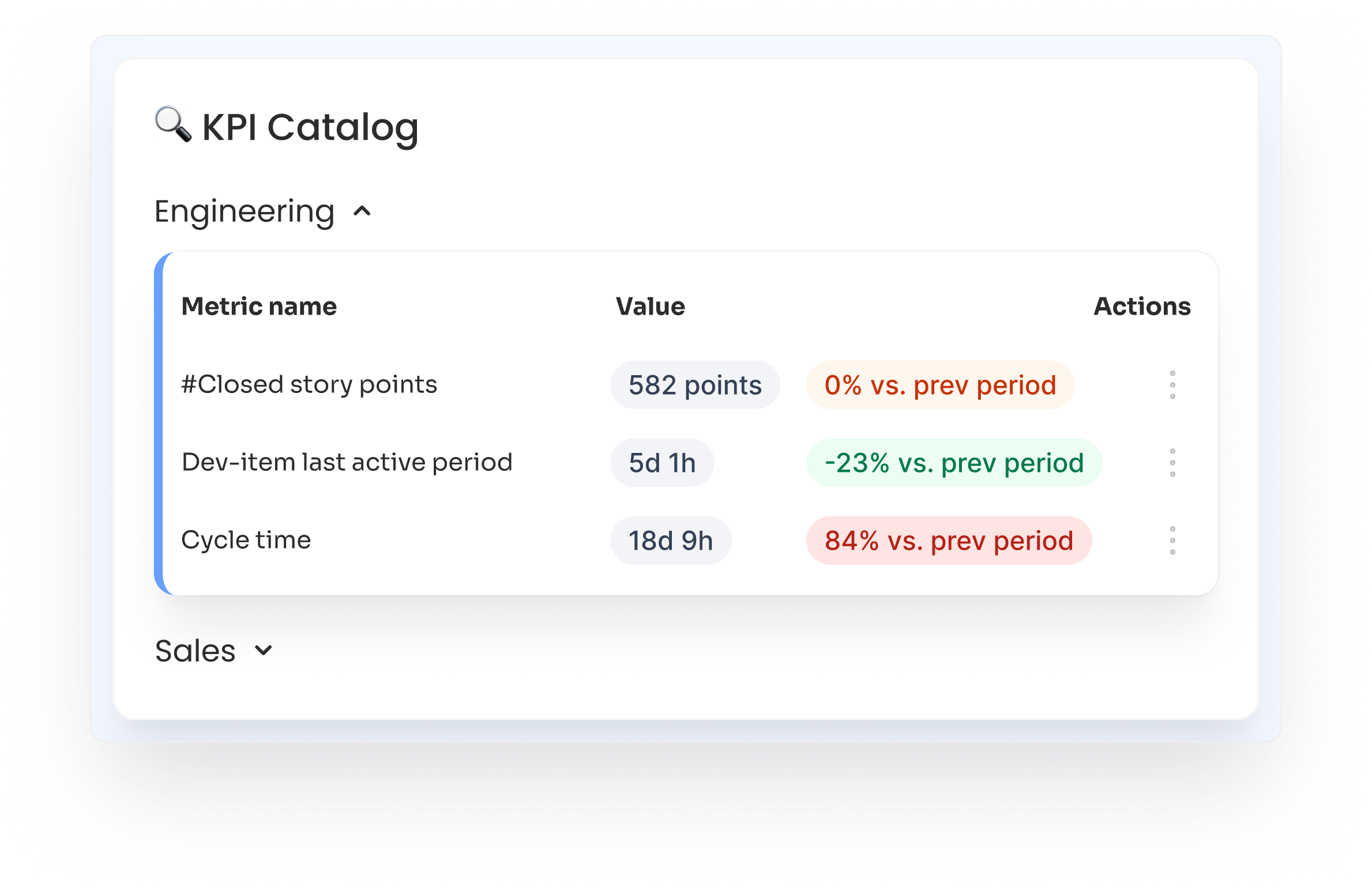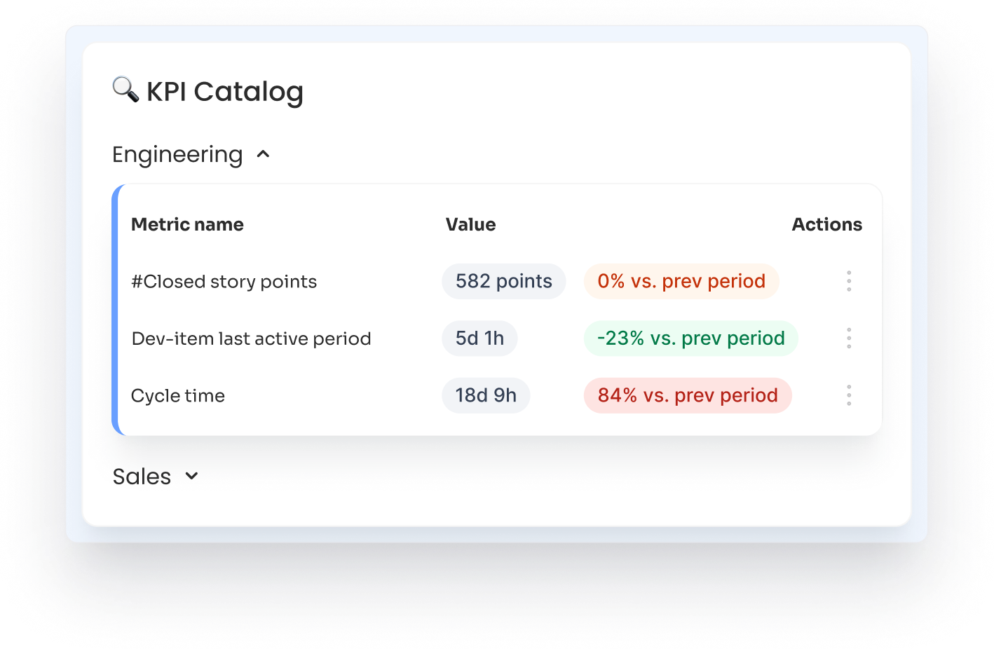 Simplify data aggregation and metric standardization with out-of-the-box KPI catalogs and board recommendations, fully adaptable to your business needs.