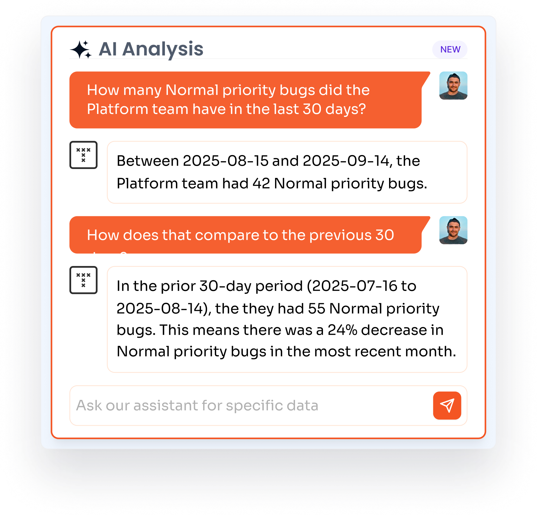 Analyze operational impact, risks, and opportunities across teams and products using built-in AI. Connect operations to business outcomes without SQL or manual analysis.
